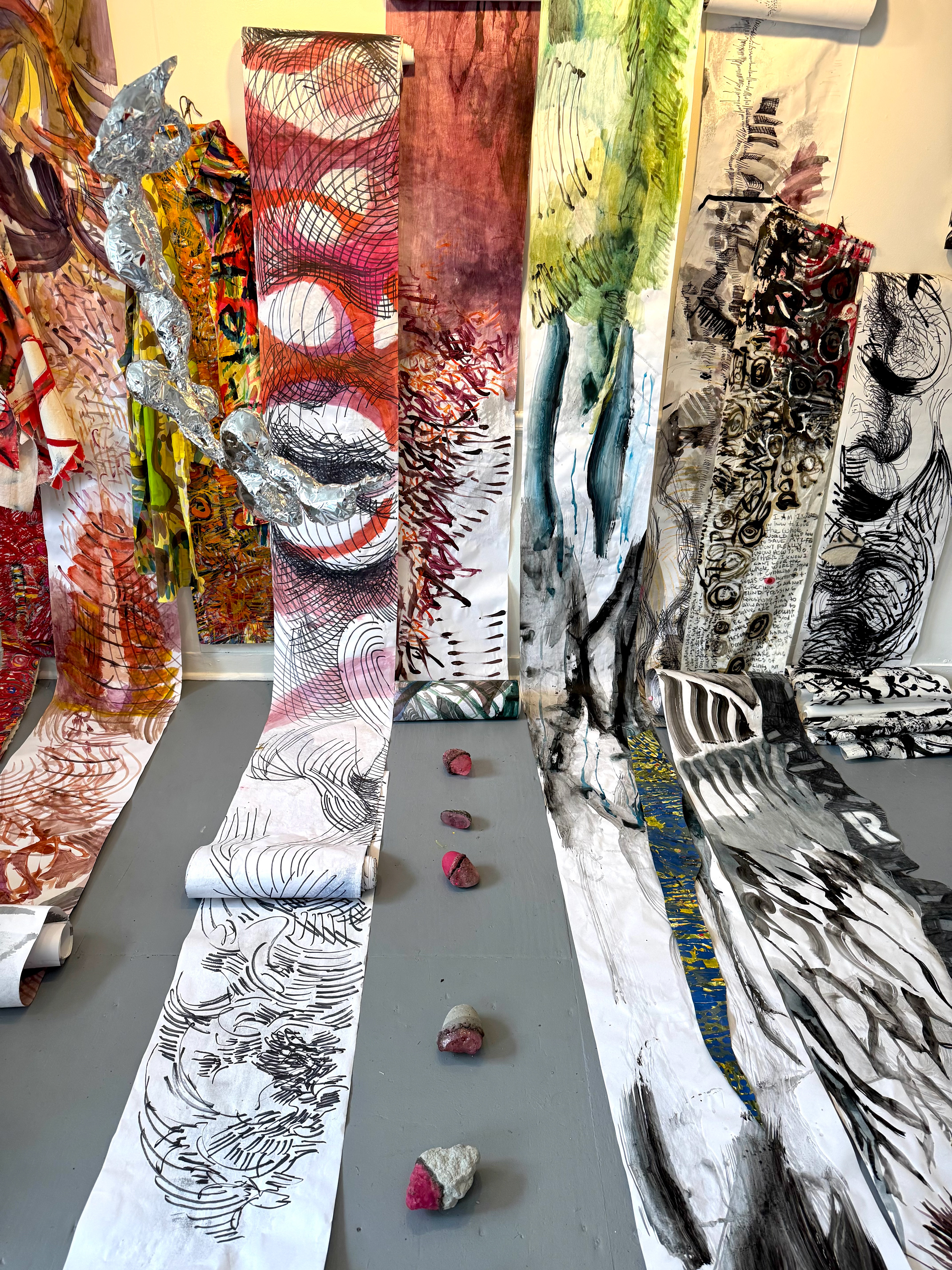 Description: Bridging somatic inscription and embodied care through sculptural layering, mark-making, and poetic trace.